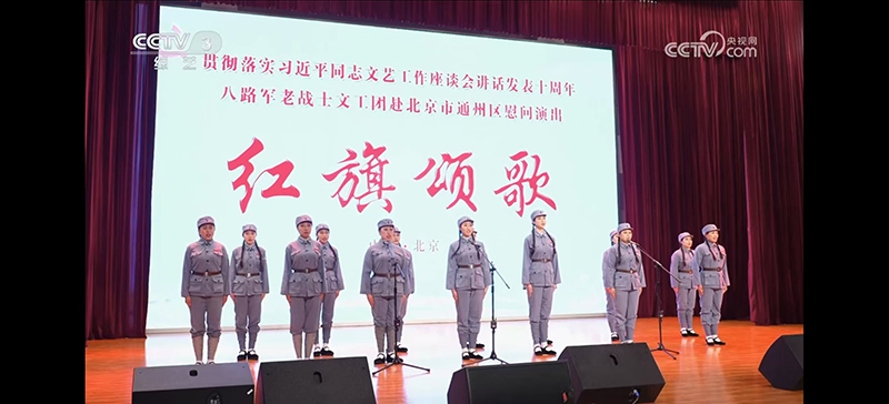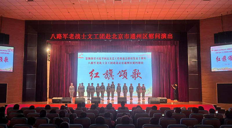 八路军老战士文工团讯:为贯彻落实习近平同志文艺工作座谈会讲话发表十周年,我团于10月30日赴京津冀交界处,北京最偏远乡镇、北京通州区永乐店镇综合文化中心,举行了两场“红旗颂歌”慰问演出,受到当地观众的欢迎与好评。我团顾问代表、中国文联原副主席胡珍、我团团长焦歌与通州区有关领导及观众一起观看了演出。