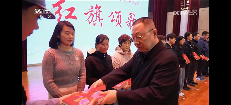 演出开始前,举行了“红色传承”进通州,作家焦歌赠书仪式。赠书仪式上,我团焦歌团长向北京市通州区永乐店镇机关和驻镇单位14个党支部,赠送了焦歌著重大选题图书《老八路》,该书记述了13位从抗日烽火中走来的革命老前辈的光辉事迹。