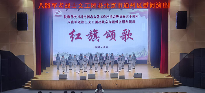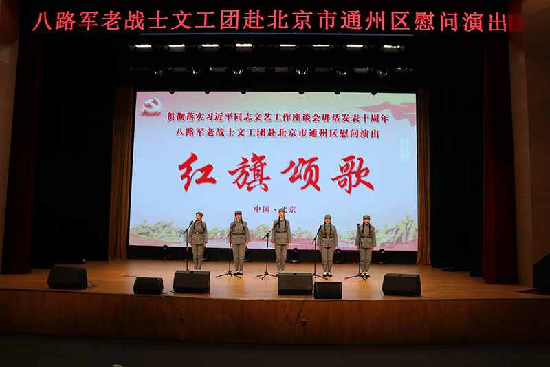 八路军老战士文工团讯:为贯彻落实习近平同志文艺工作座谈会讲话发表十周年,我团于12月17日驱车往返约280里赴北京市通州区潞城镇综合文化中心,举行了两场“红旗颂歌”慰问演出,受到当地观众的热烈欢迎与一致好评。