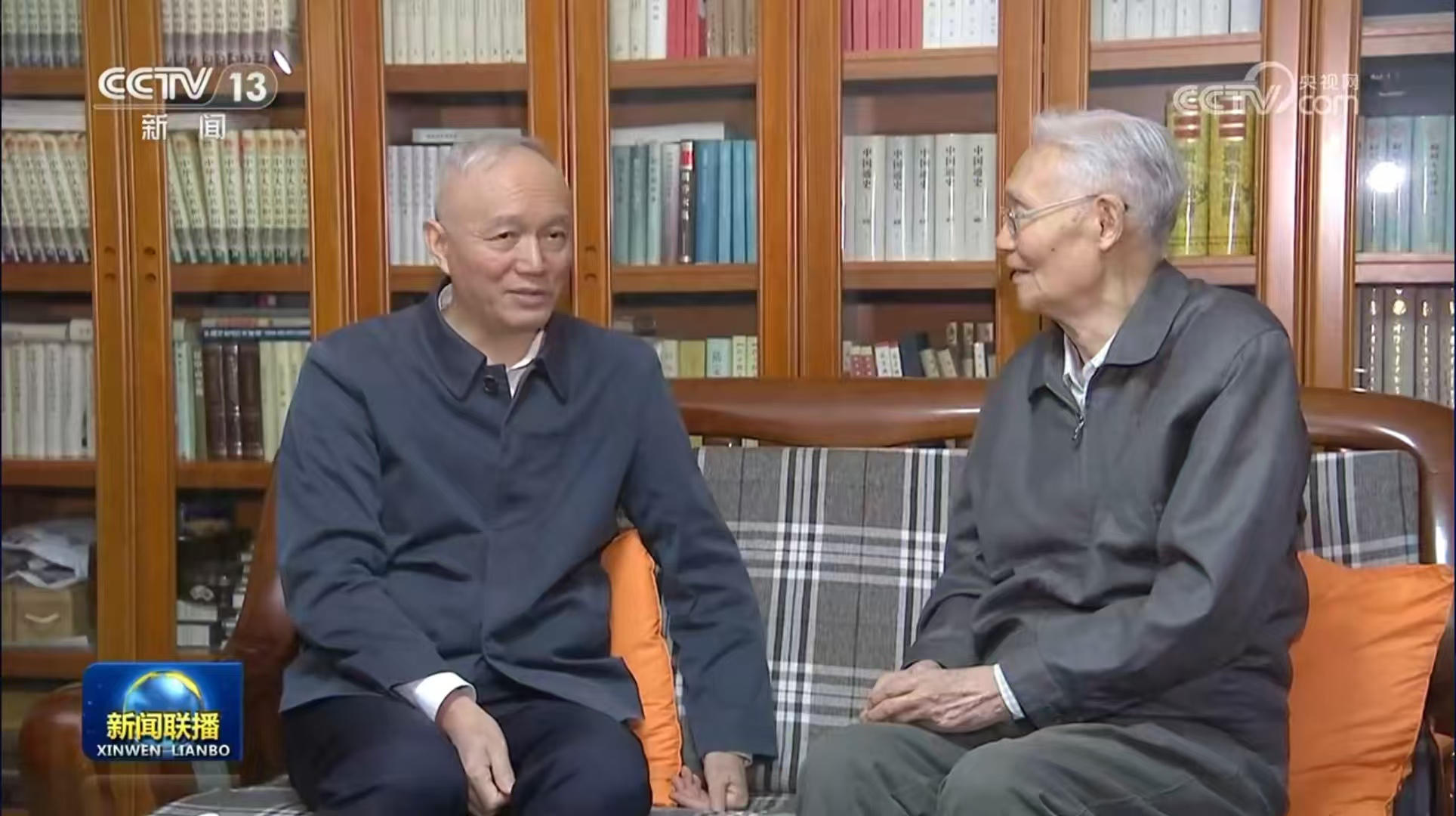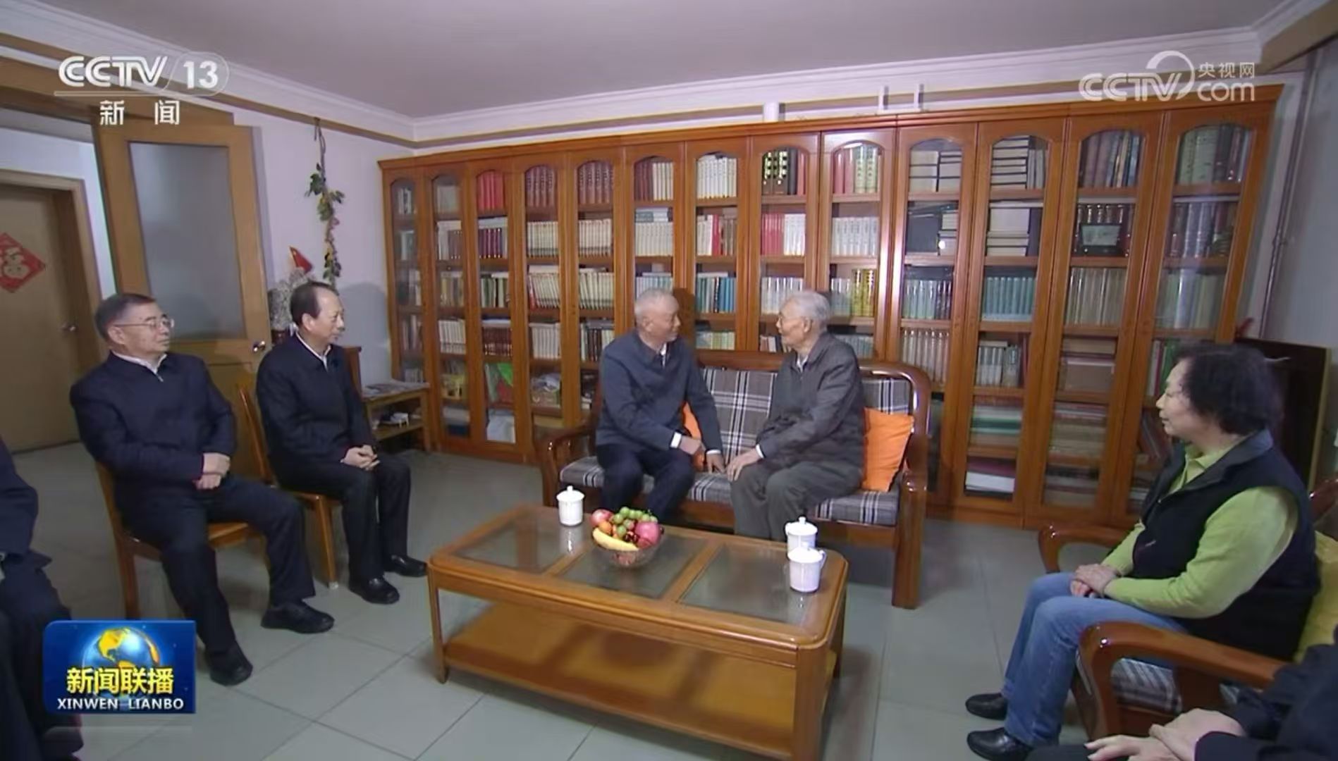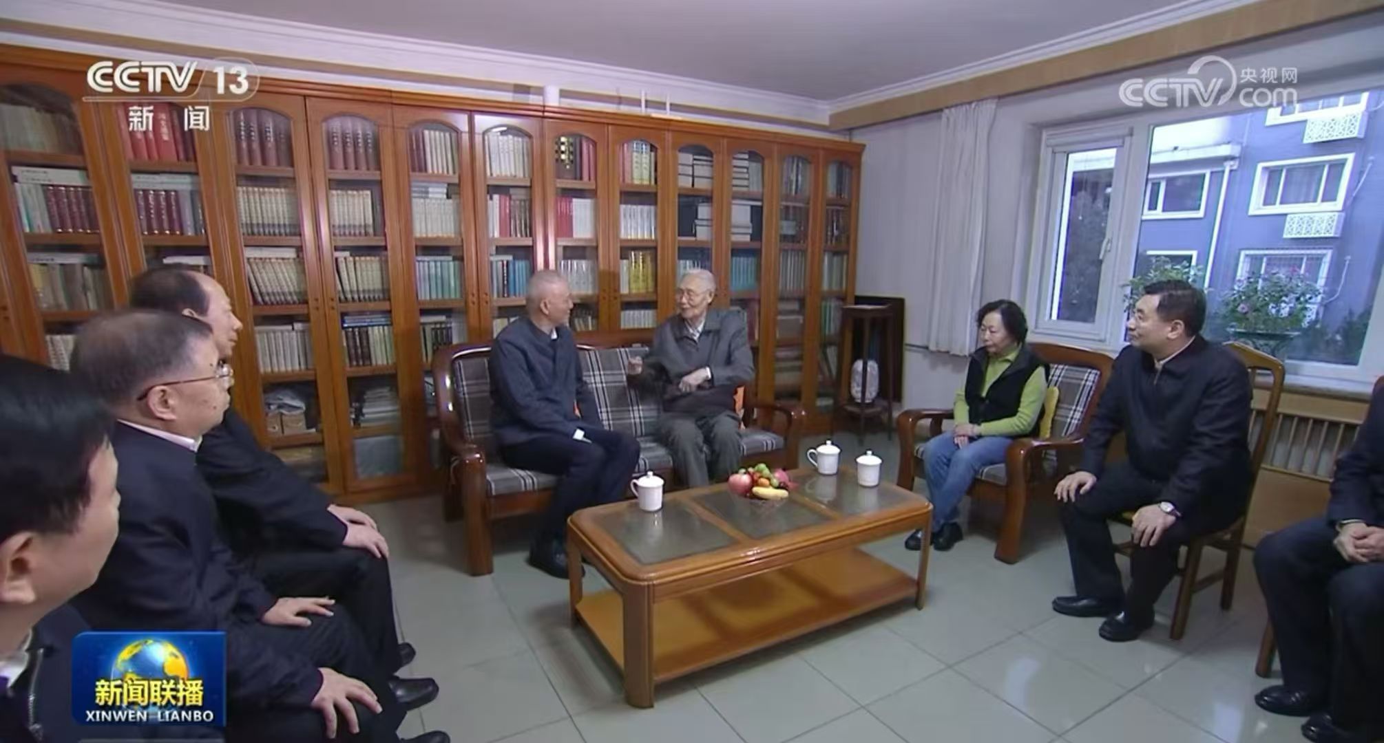 图注:蔡奇同志看望逄先知同志,《新闻联播》部分截图